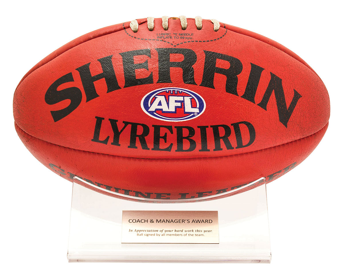 Excellent value for this stylish acrylic ball holder that can be used for different sports including Aussie Rules, Rugby, Soccer and Netball. Considerable space for your engraving. Great award for top performers and perfect for coaches, managers and officials looking to mark a milestone.