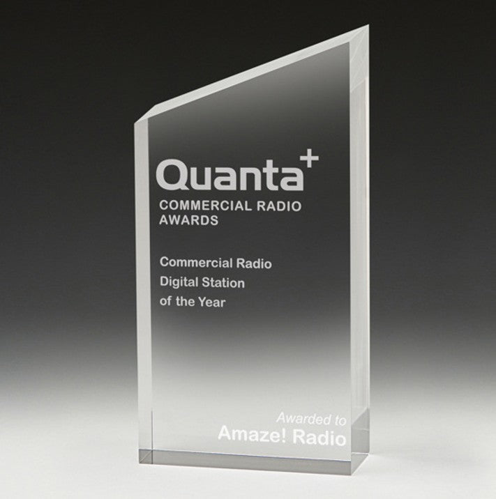 Acrylic allows for precise, stand-out engraving or full colour printing. This product can stand on its own. Part of the extensive range of corporate awards on offer - in acrylic, crystal and glass.