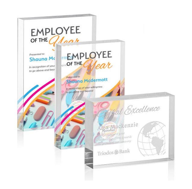 Acrylic allows for precise, stand-out engraving or full colour printing. This product can stand on its own. Part of the extensive range of corporate awards on offer - in acrylic, crystal and glass.