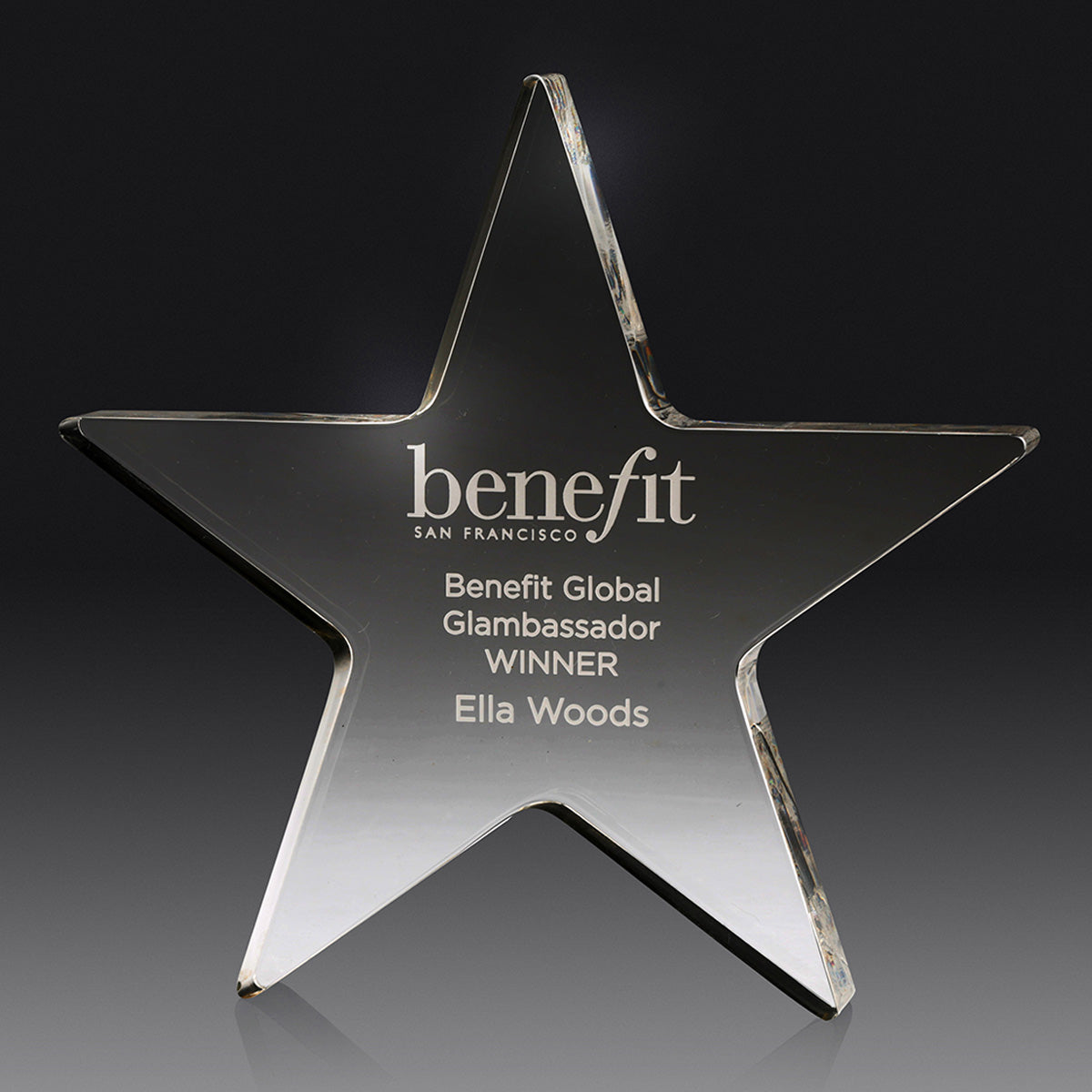 The popular Star Award is ideal for star performers in your event, presentation or competition. A universally recognised symbol for achievement and success - the Acrylic Star Award also provides for precision clear engraving.