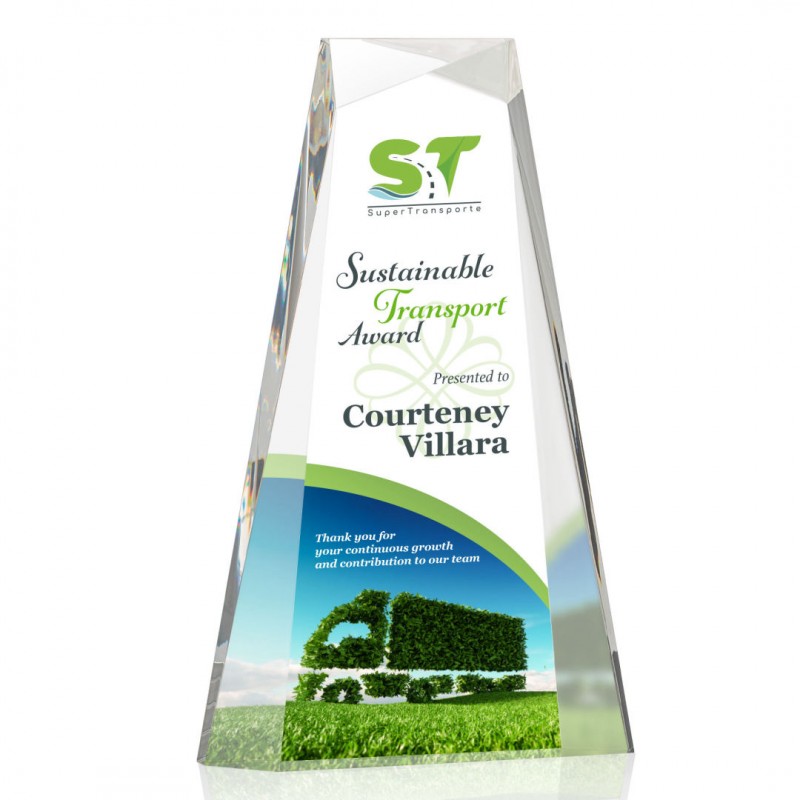 Acrylic allows for precise, stand-out engraving or full colour printing. This product can stand on its own. Part of the extensive range of corporate awards on offer - in acrylic, crystal and glass.