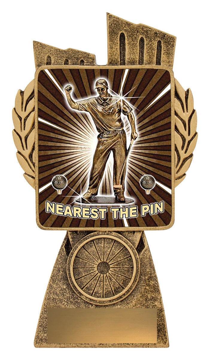 This Antique Gold Lynx Trophy is the perfect award for Nearest the Pin competitions at your golfing event. Featuring a classic wreath and vibrant design, Golf trophies are customisable and available in 4 impressive sizes.