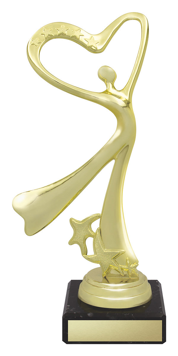 Perfect trophies for dance & performing arts with the star riser feature and finished with a fantastic abstract style dance top. Change colour of column to suit.