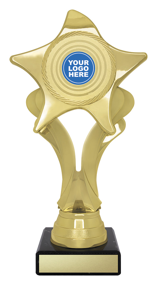 Radiant Athena holder series of trophies perfectly shows off your custom logo over a number of sizes. Choose colour combination to best suit your awards.