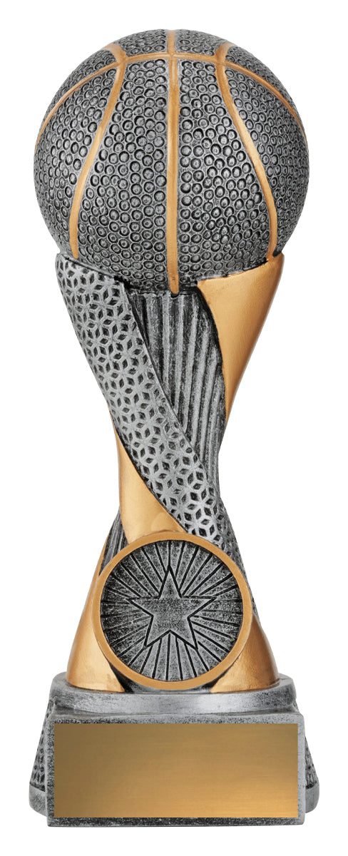 Apex trophies for Basketball offer the combination of elegant design, multi-textured elements and brilliant silver & gold colours. Central space for your logo.
