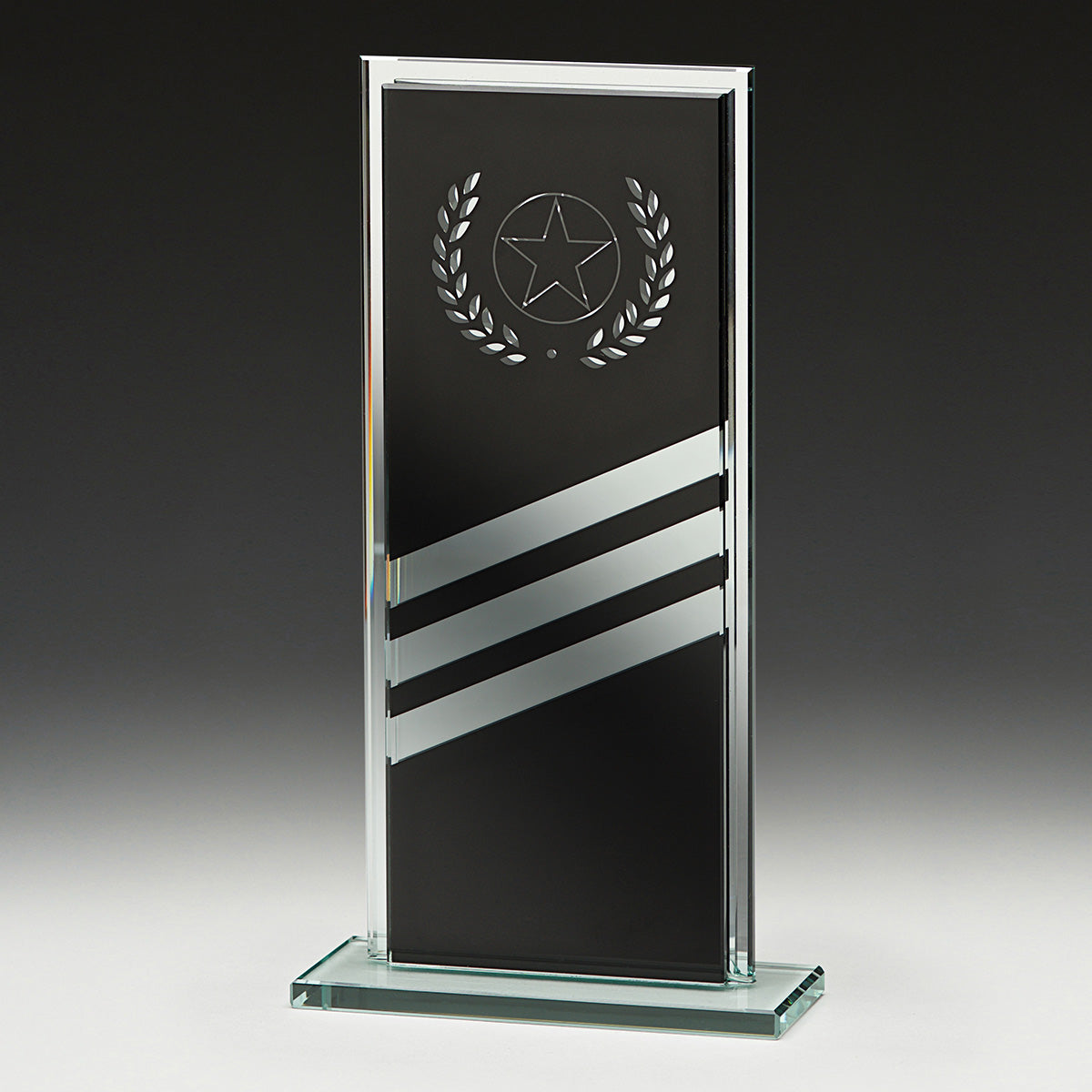 Series of attractive glass awards offer great value with an exciting design of bright colour and silver highlights.