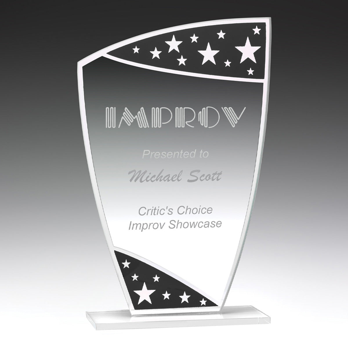 Sparkle glass awards offer a fun and affordable option suited for variety of events. Different colours to choose from & brilliant multi-star design.