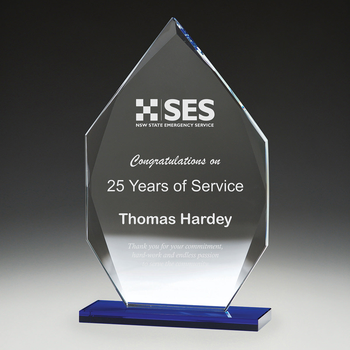 Series of glass awards feature the popular arrowhead design synonymous with achievement and elevated with the blue glass element. Available in 3 great sizes and provided in gift boxes.