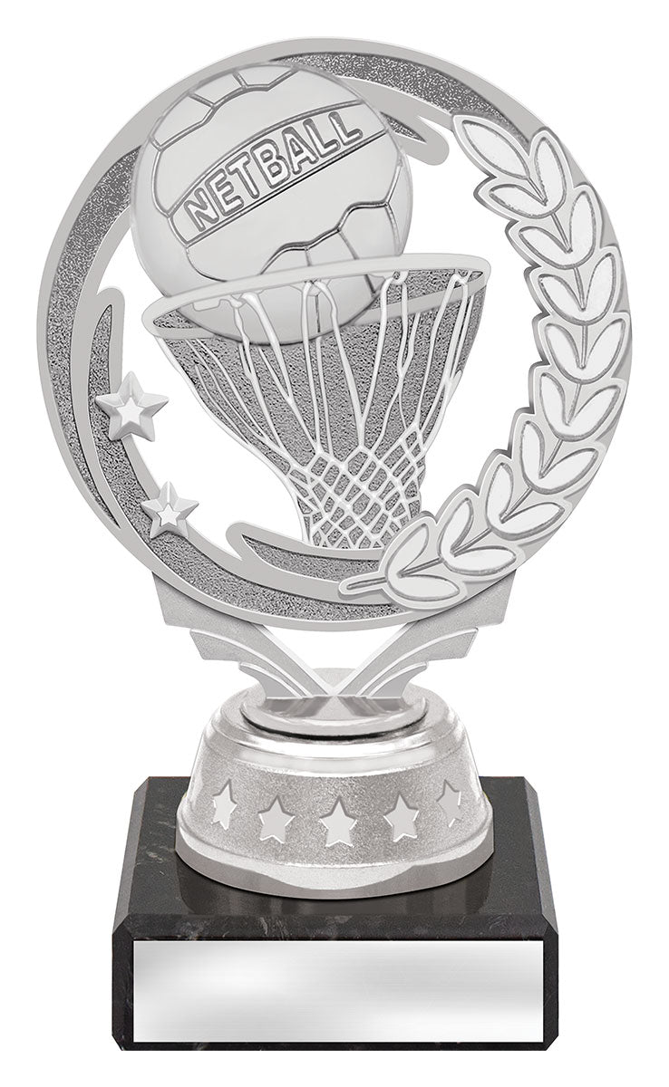 Affordable trophies for your netball team with the versatile silver torch top which can be used with columns of any colour.