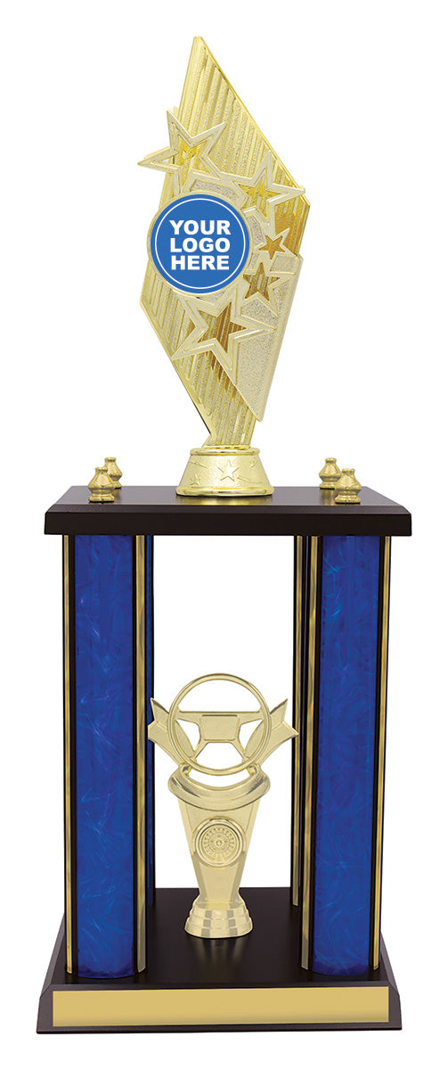 Excellent poster set trophy offers unrivalled value for such an impressive setup. Choose figure or top to represent your activity. Height and colour of columns to be varied.