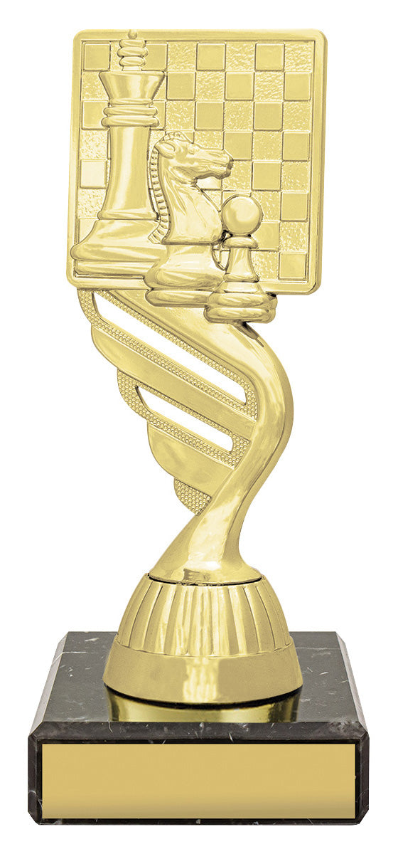 Budget trophy option to recognise the participants in your event or presentation. Traditional bright gold top for your sport or activity paired with black marble base for your engraving.