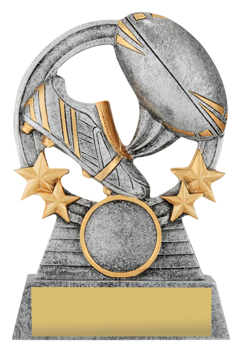 Comet series of trophies feature iconic boot & ball elements well suited for rugby league or union. With space for your logo, these trophies are perfect for your participation & club orders.