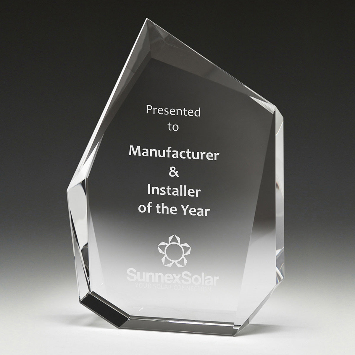 The Extra-Thick Prism series of crystal awards presents the ultimate in recognition of corporate success and high achievement. This prestige award of substantial size features finely cut facets.
