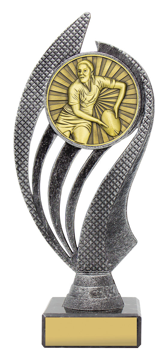 Husky series of trophies on premium black marble allows for different award options for your activity. Appealing antique silver and gold combination over number of sizes.