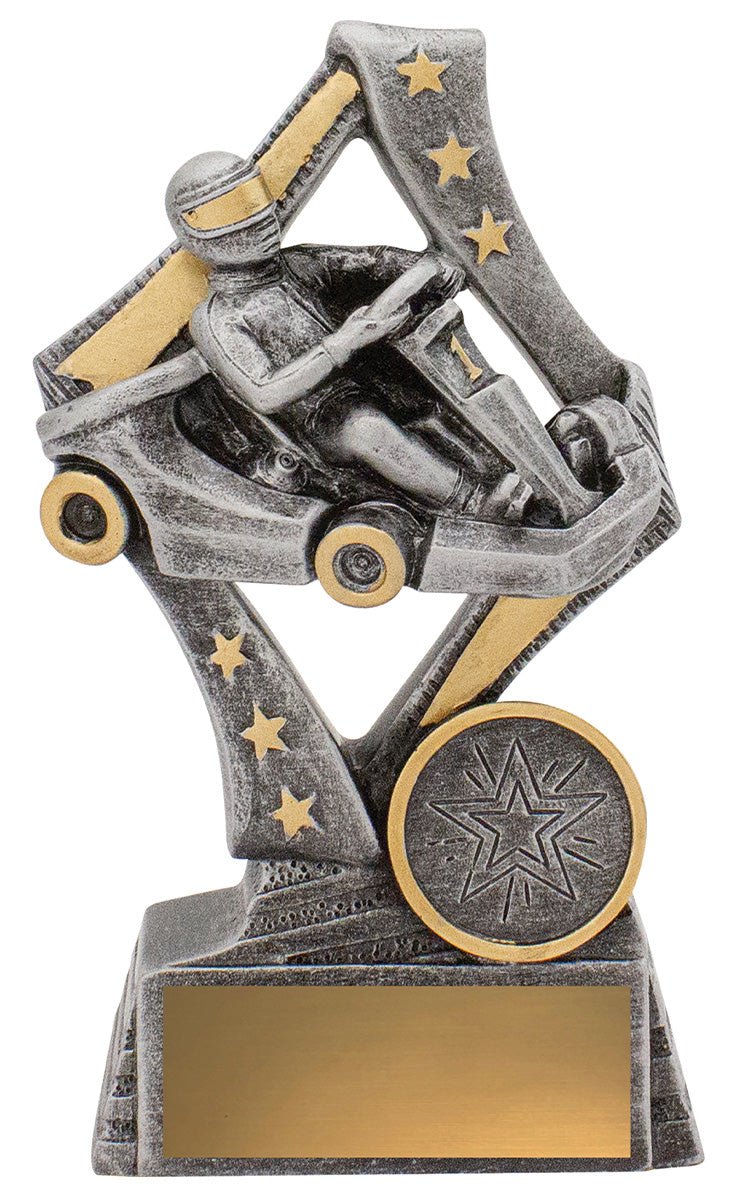 Dynamic karting trophies ideal for all participants at your event. These 'Flag' go kart trophies feature a stylish star based design and driver in action.