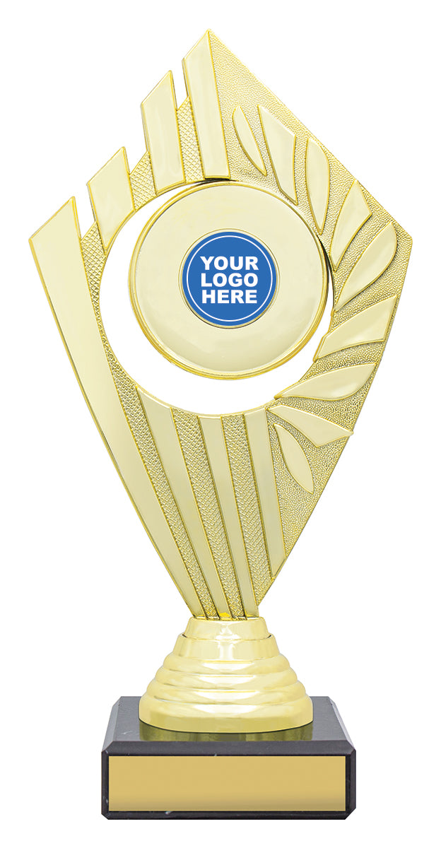 Flyer Series of trophies feature beautifully designed holders on columns of different colours - option to showcase 25 or 50mm logo or insert.