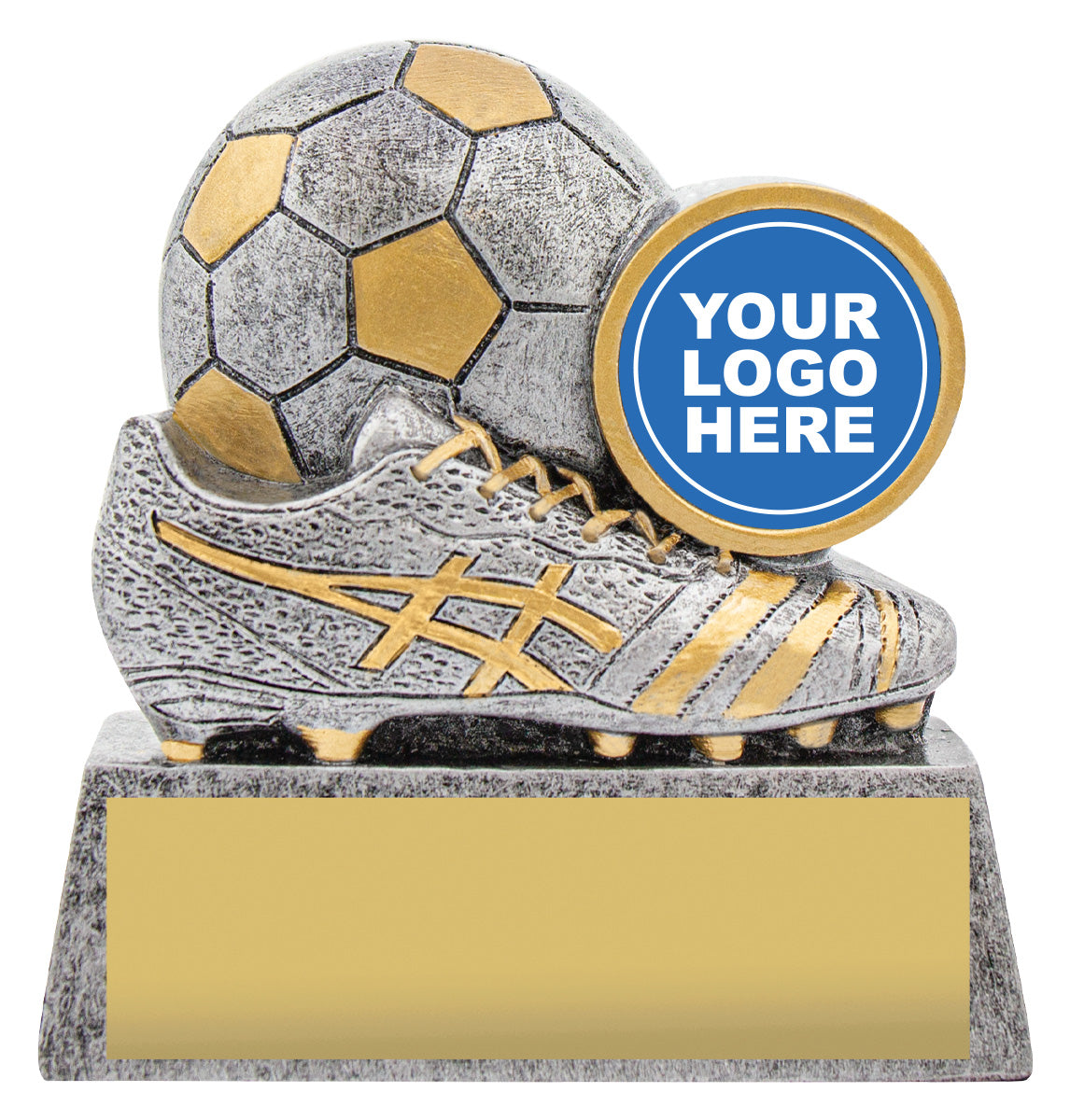 The Football Squad theme is perfect for participation awards at your club or team with central space for your club logo.