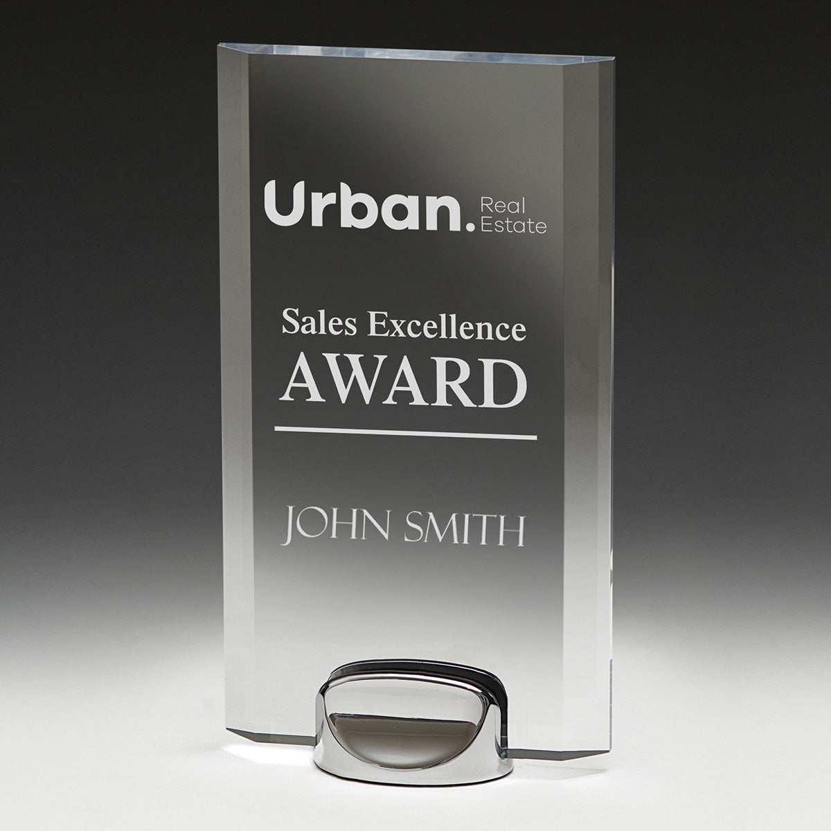 Sophisticated acrylic award, the Foundation design features a central, elegant space for engraving & printing with an expertly crafted metal base.