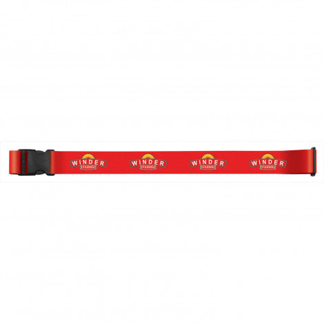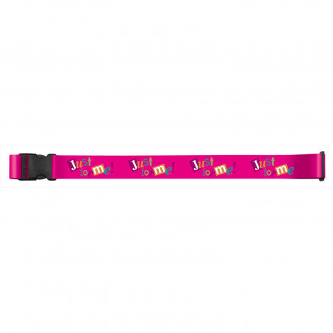 Ultra-strong luggage strap which is fully adjustable and will fit even the largest suitcase. It adds a level of security to cases and bags in case of zip failure and makes identification easy at airports. The strap is branded on both sides in spot colour or full colour at no extra cost. A production lead time of 20 working days applies to this product by air freight and larger orders can be sea freighted on request to reduce the freight cost.