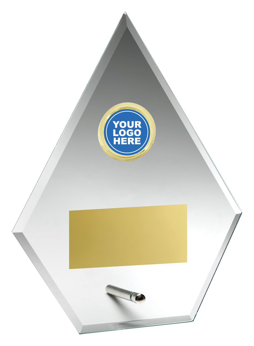 Iconic arrow designed glass plaques for your custom logo and with space for engraving.