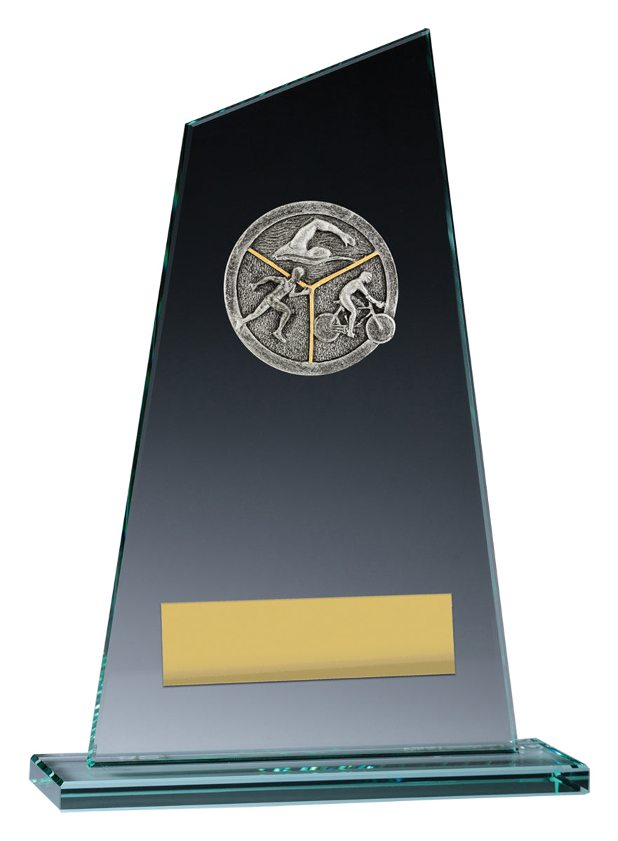Glass awards in 3 great sizes for your event or competition present an attractive alternative to traditional trophies. The glass award is elevated by the addition of the Peak Front representing your sport or activity. Plenty of space for your engraving.