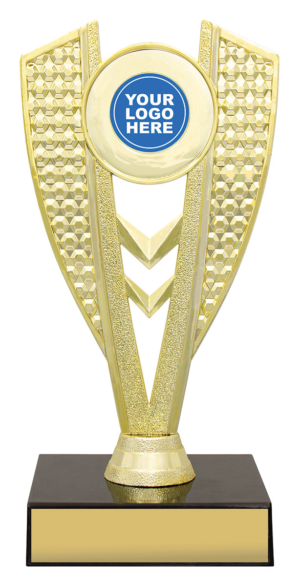 Classic series of black timber trophies with stylish Modus holder for your custom or club logo.