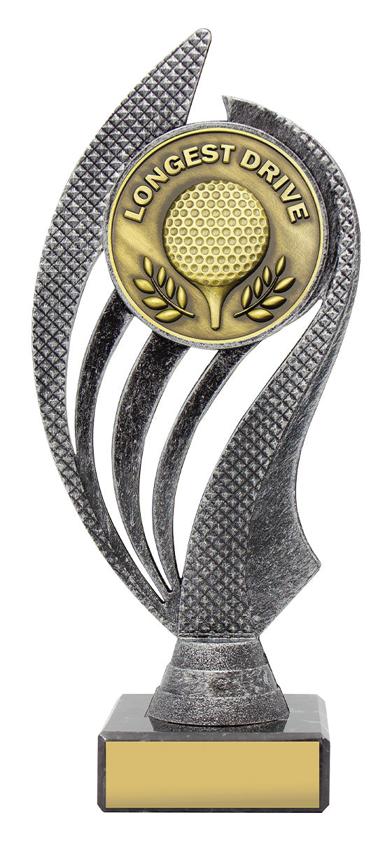 Husky series of trophies on premium black marble allows for different award options for your activity. Appealing antique silver and gold combination over number of sizes.