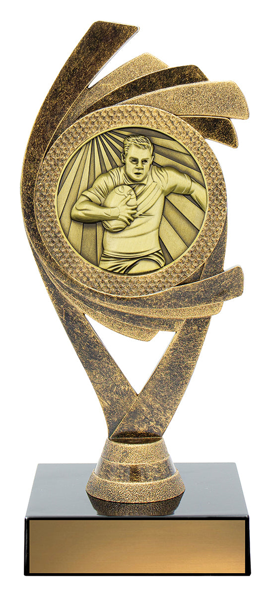 Dynamic design of holder trophies rendered in antique gold colours - male or female available.