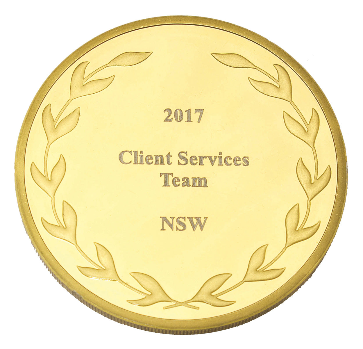 Laurel Presentation Medal in custom designed case and presentation box. In Gold only, suitable for engraving on front and back of the medal.