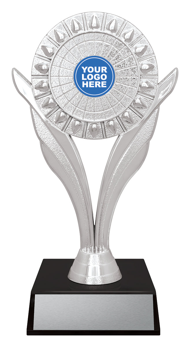 The Leaf series of holders finished in classic silver offer prime space for your custom logo. Pair with a base from the variety of colours available.