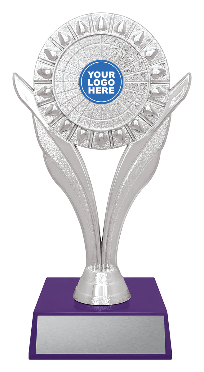 The Leaf series of holders finished in classic silver offer prime space for your custom logo. Pair with a base from the variety of colours available.