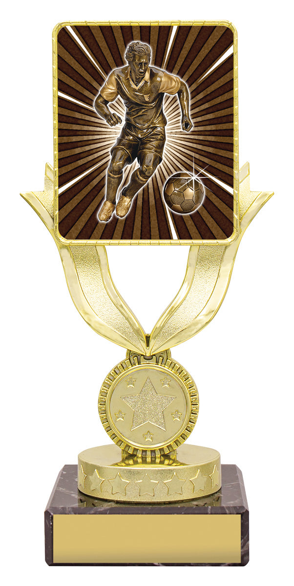 Brilliant football trophies in the Lynx Bold range features gold trophy holder showcasing the insert for your sport or activity. Range of sizes available.
