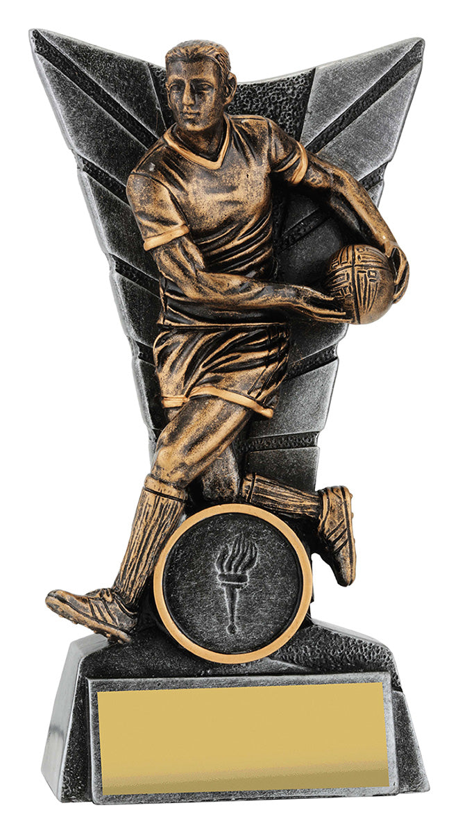 Dynamic silver backdrop for this trophy series frames the detailed player captured in action. Finished in antique gold, this player series is available in male and female and in multiple sizes to suit your award needs. Excellent choice for best player trophies for your team or club.