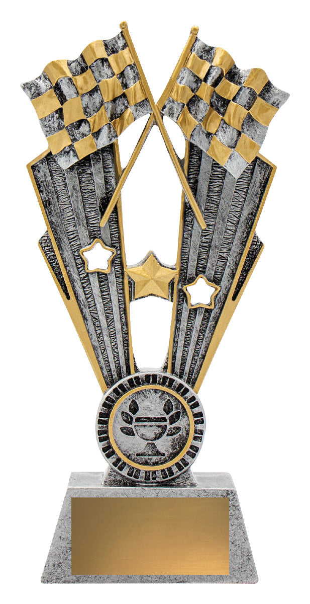 Classic trophy series featuring the iconic crossed motorsport flags. A versatile theme suited for various events, the motorsport trophies are available in 4 sizes. Space for 25mm insert if required.
