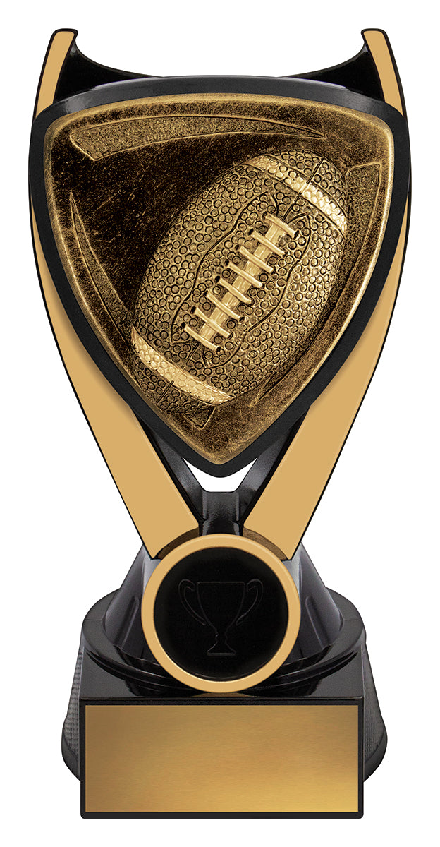 Nova series of trophies present a unique black & gold colour combination with a bold 3D type design to really celebrate the sport or activity of your awards.