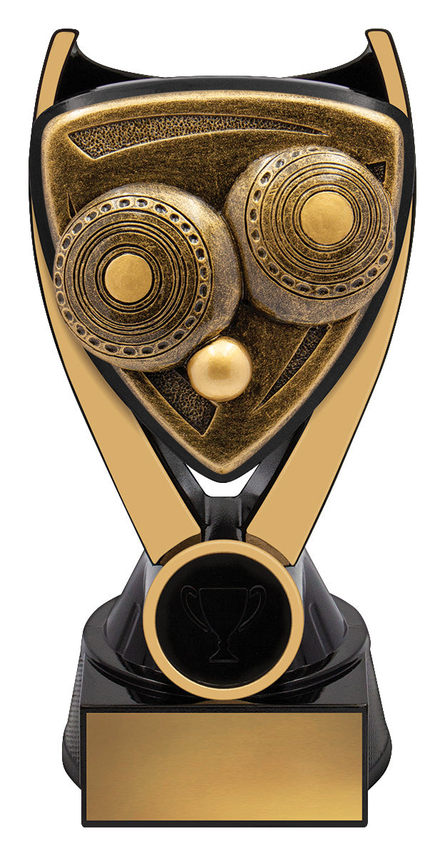 Nova series of trophies present a unique black & gold colour combination with a bold 3D type design to really celebrate the sport or activity of your awards.