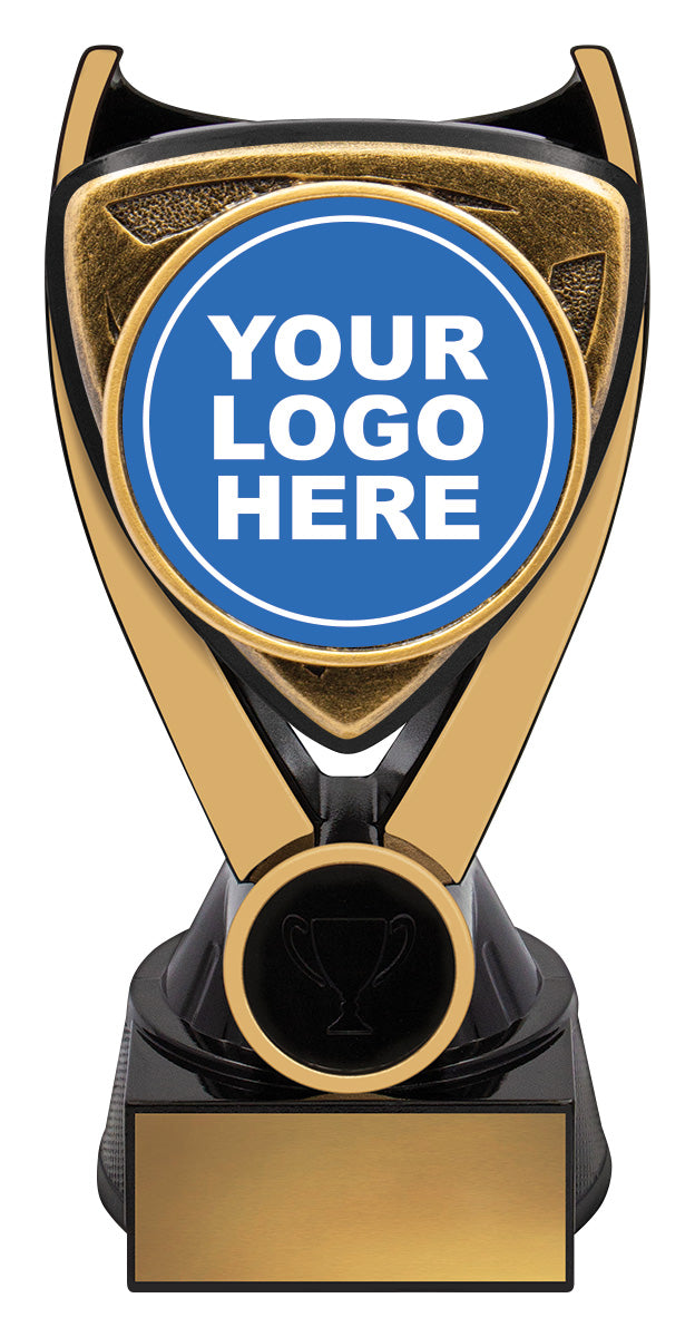 Nova series of trophies present a unique black & gold colour combination with a bold 3D type design to really celebrate the sport or activity of your awards.