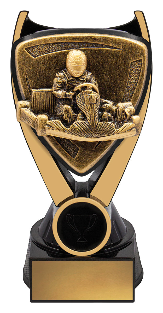 Nova series of trophies present a unique black & gold colour combination with a bold 3D type design to really celebrate the sport or activity of your awards.