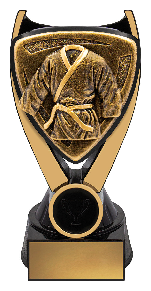Nova series of trophies present a unique black & gold colour combination with a bold 3D type design to really celebrate the sport or activity of your awards.