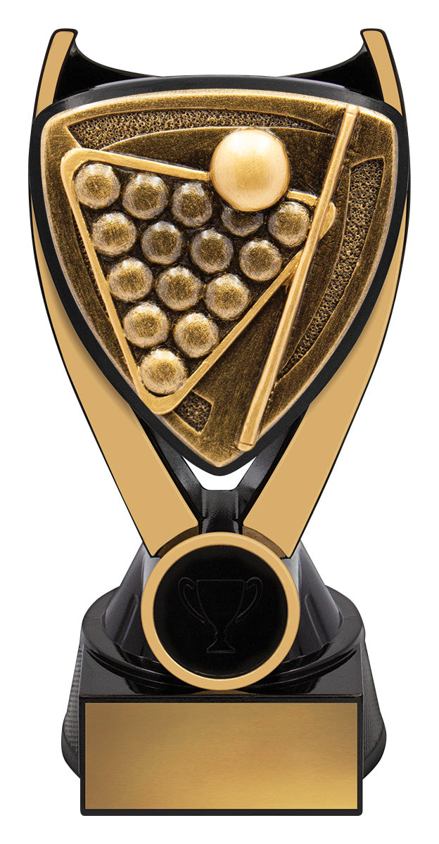 Nova series of trophies present a unique black & gold colour combination with a bold 3D type design to really celebrate the sport or activity of your awards.