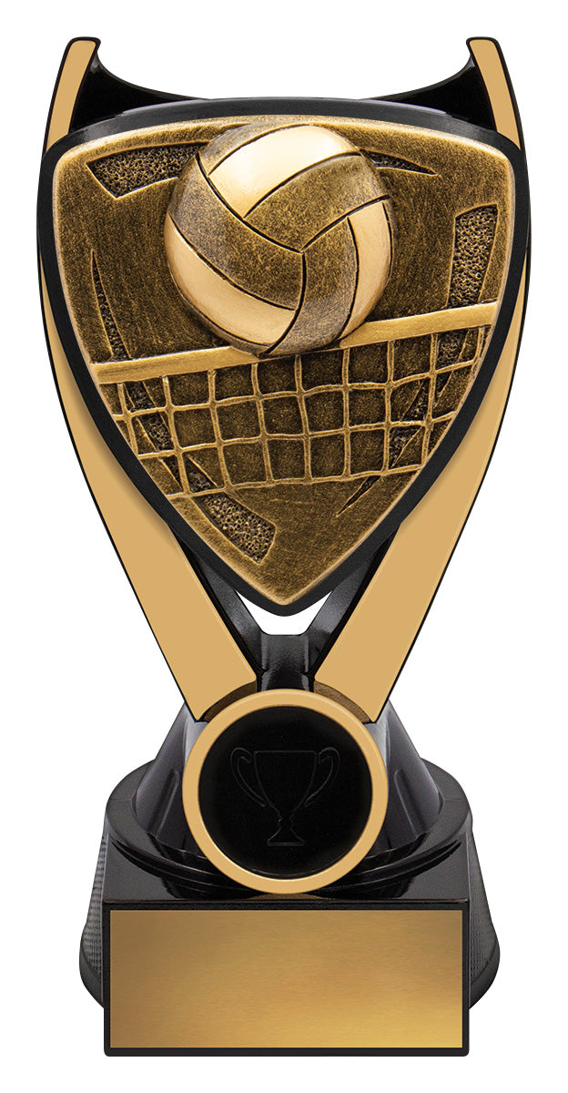 Nova series of trophies present a unique black & gold colour combination with a bold 3D type design to really celebrate the sport or activity of your awards.