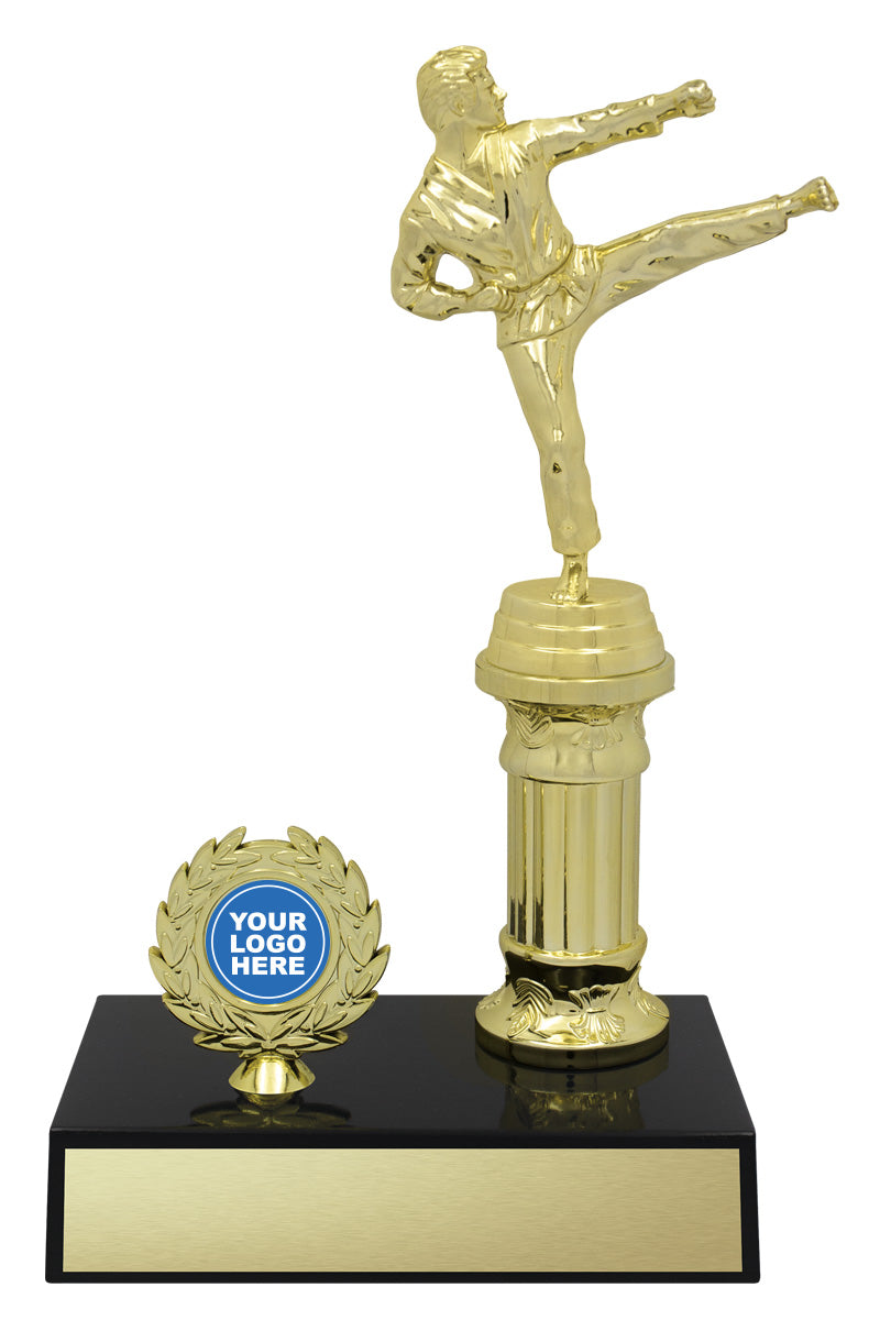 Pair of attractive multi part trophies that may be suitable for your event or competition. Excellent space for a custom logo. Select a top for your sport or activity.