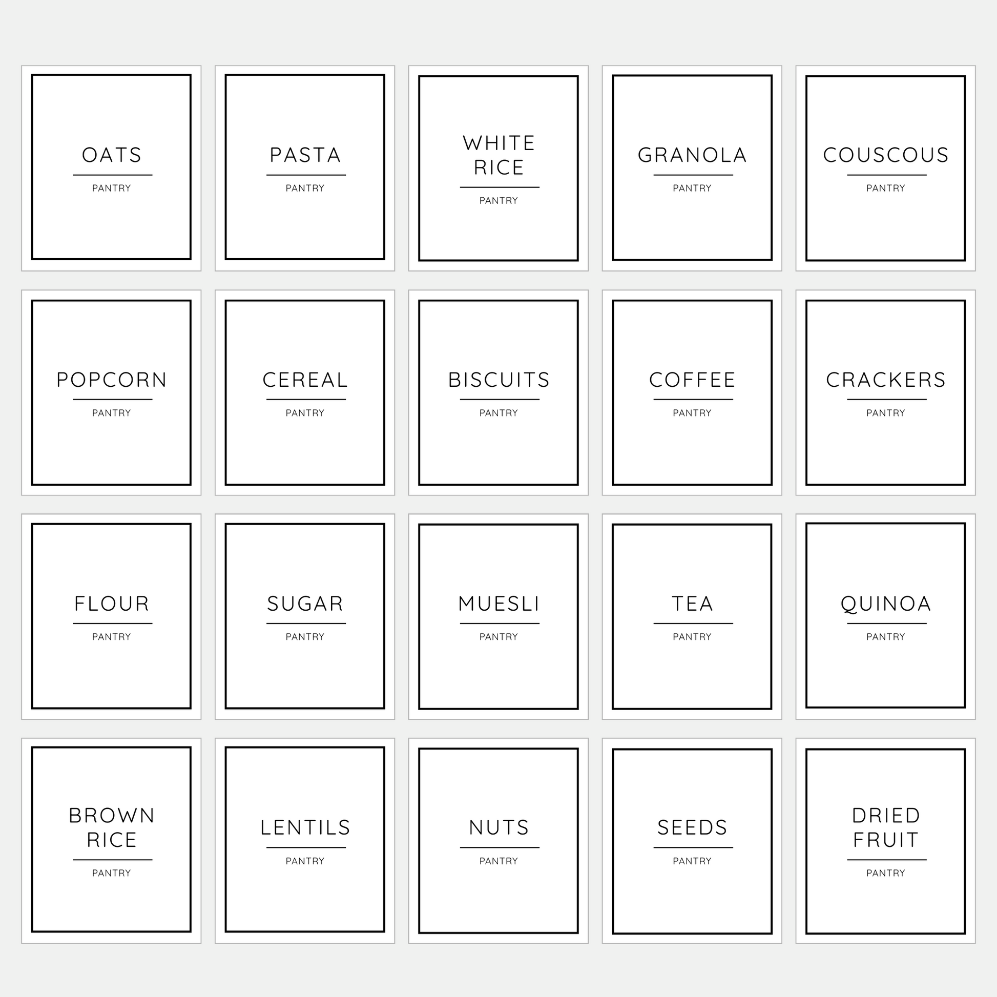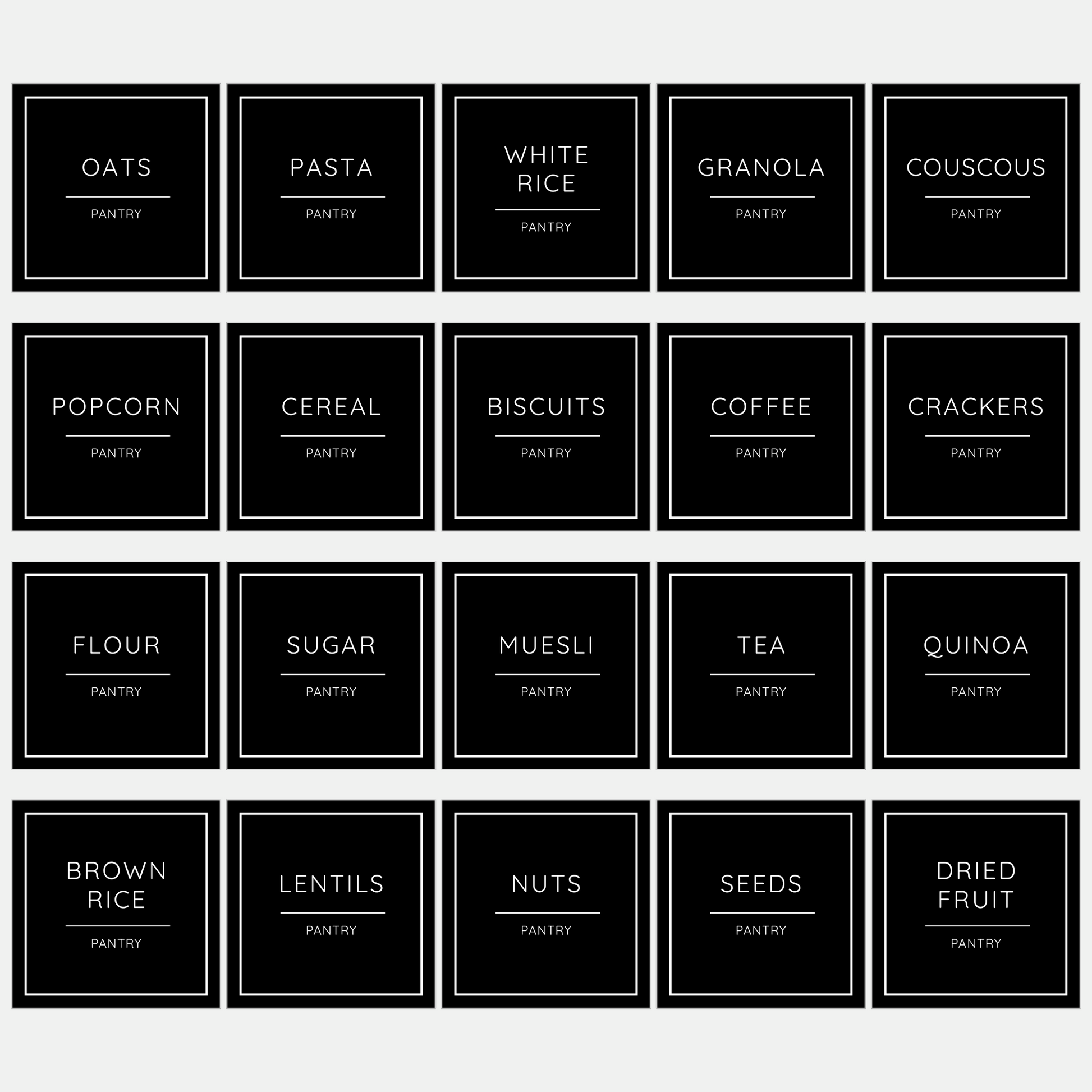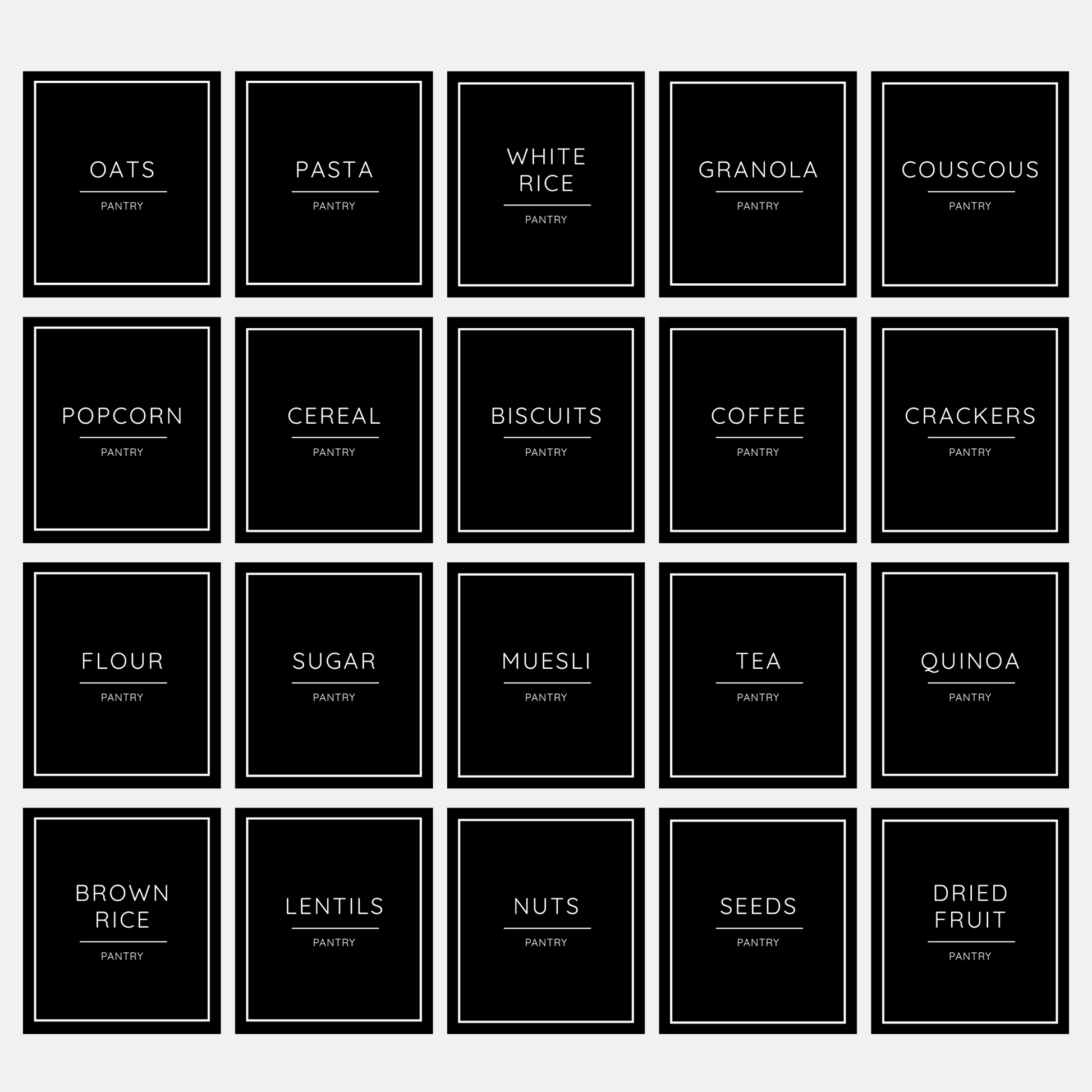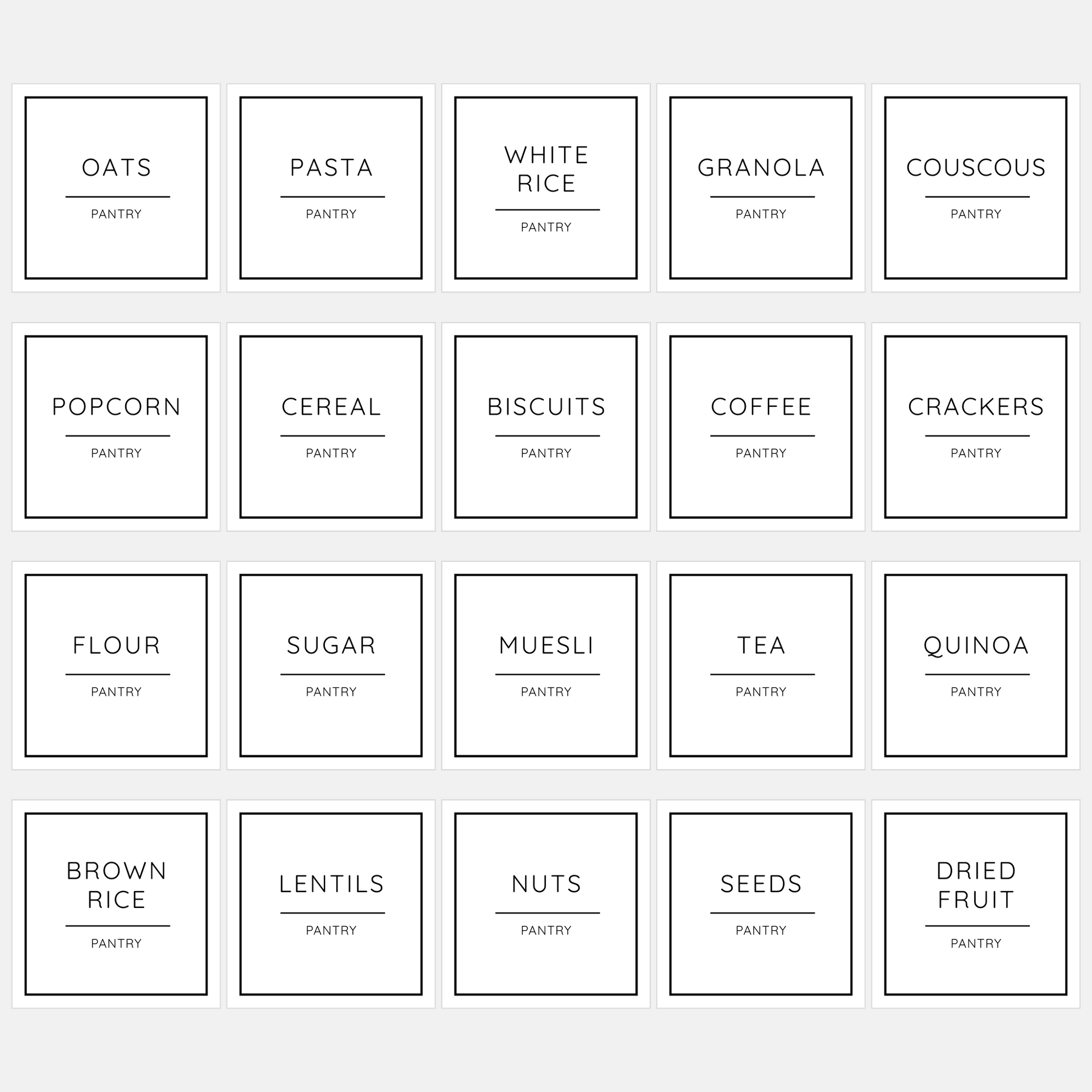 Keep your kitchen looking modern and organised with our minimalist pantry label stickers. Printed on durable, waterproof vinyl, these easy-to-apply labels are perfect for jars, canisters, and containers — a simple way to step up your pantry organisation.