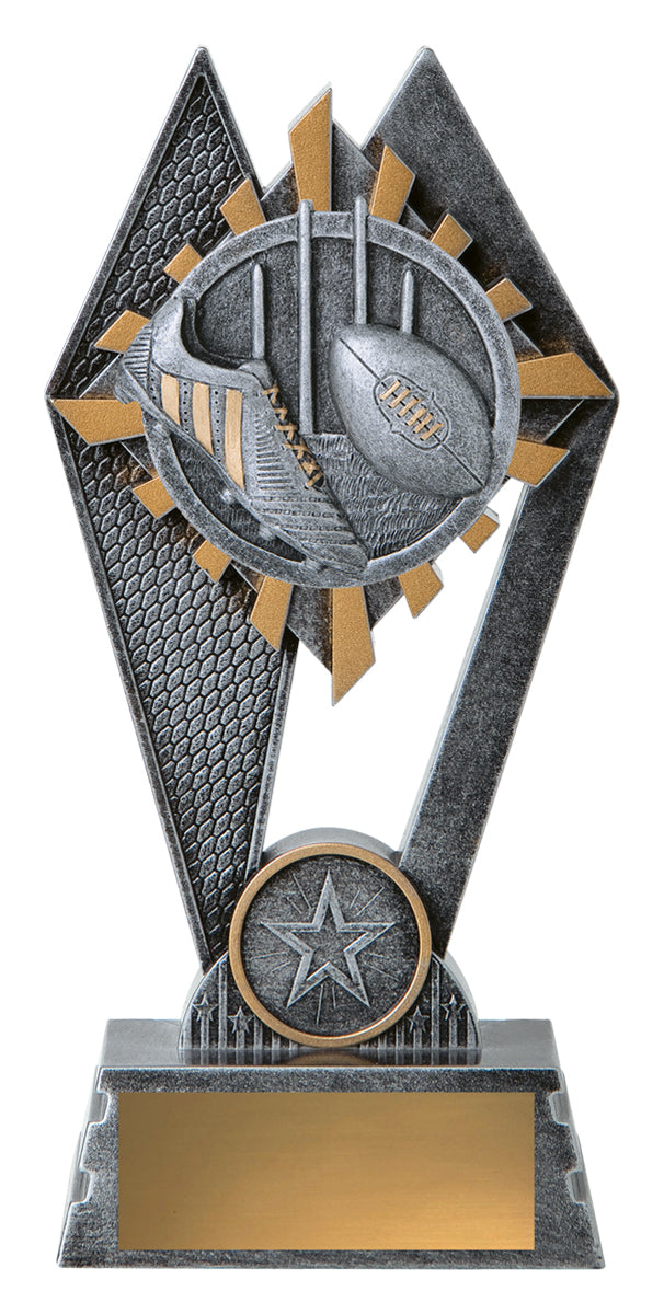 The Peak Series - for Aussie Rules - is an innovative trophy series offering super value for such an impressive size range. An elevated design that showcases the iconic boot & ball elements against a vibrant sunray style background. Check out the Peak design in your sport or activity.