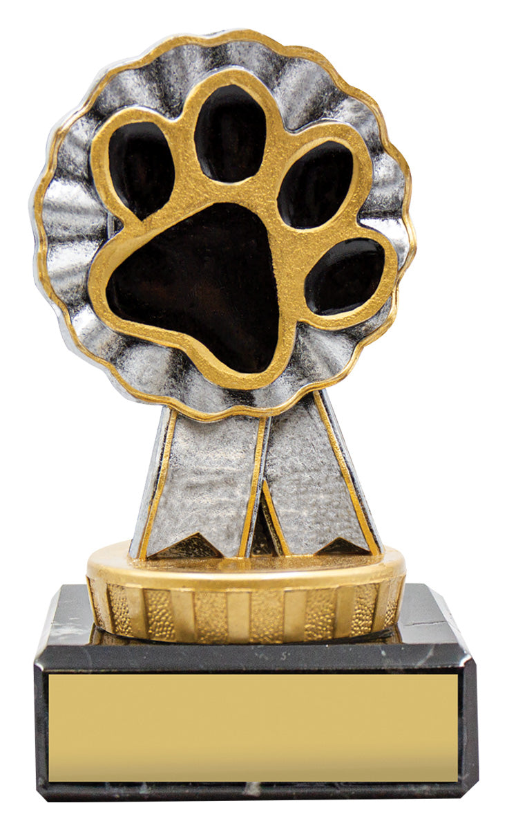 Reliable and affordable trophy choice, the Marble Trophy series features classic European marble and the unique Pet Rosette trophy top. Marble trophies available in 4 sizes and provide extra prestige to your trophy award presentation for pet & animal events.