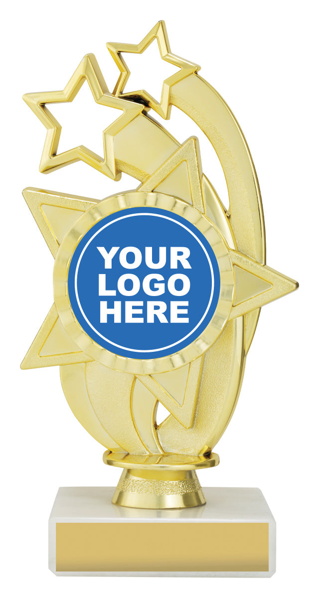 Brilliant soaring star top on the classic pink columns perfect for dance and performing arts. Holder suits your 25 or 50mm insert. Series features classic white marble.