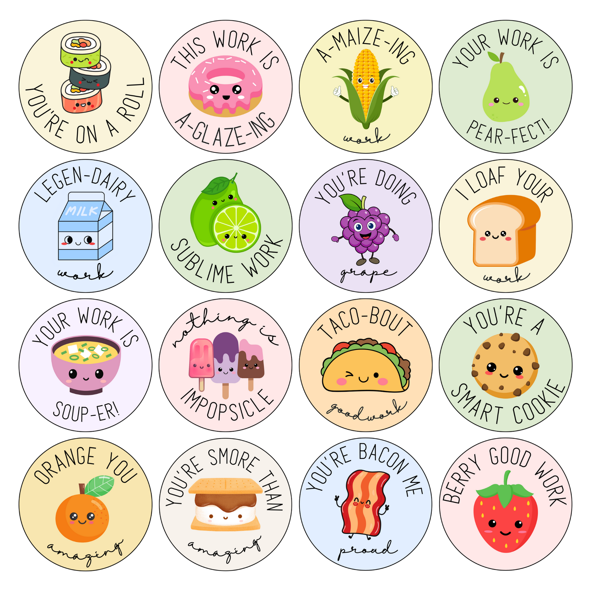 Bring some fun and encouragement to the classroom with this set of 16 punny reward stickers! Each 5x5cm vinyl sticker features a colourful food-themed design paired with a playful pun - perfect for making students smile while celebrating their achievements.