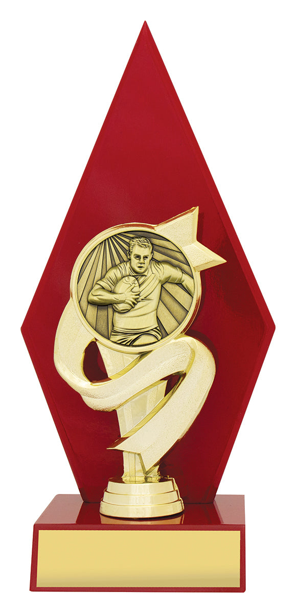 Brilliant timber arrow trophies feature player in action theme. Available in male or female. Timber available in different colours.