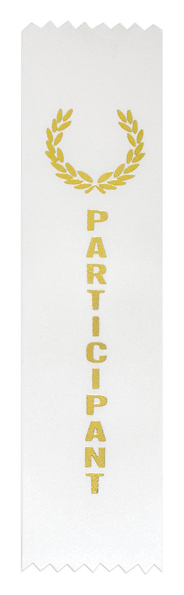 Place Ribbons of high quality part of the extensive range of ribbons and medals on offer. Participant ribbon finished in neutral white. Other place and slogan designs available.