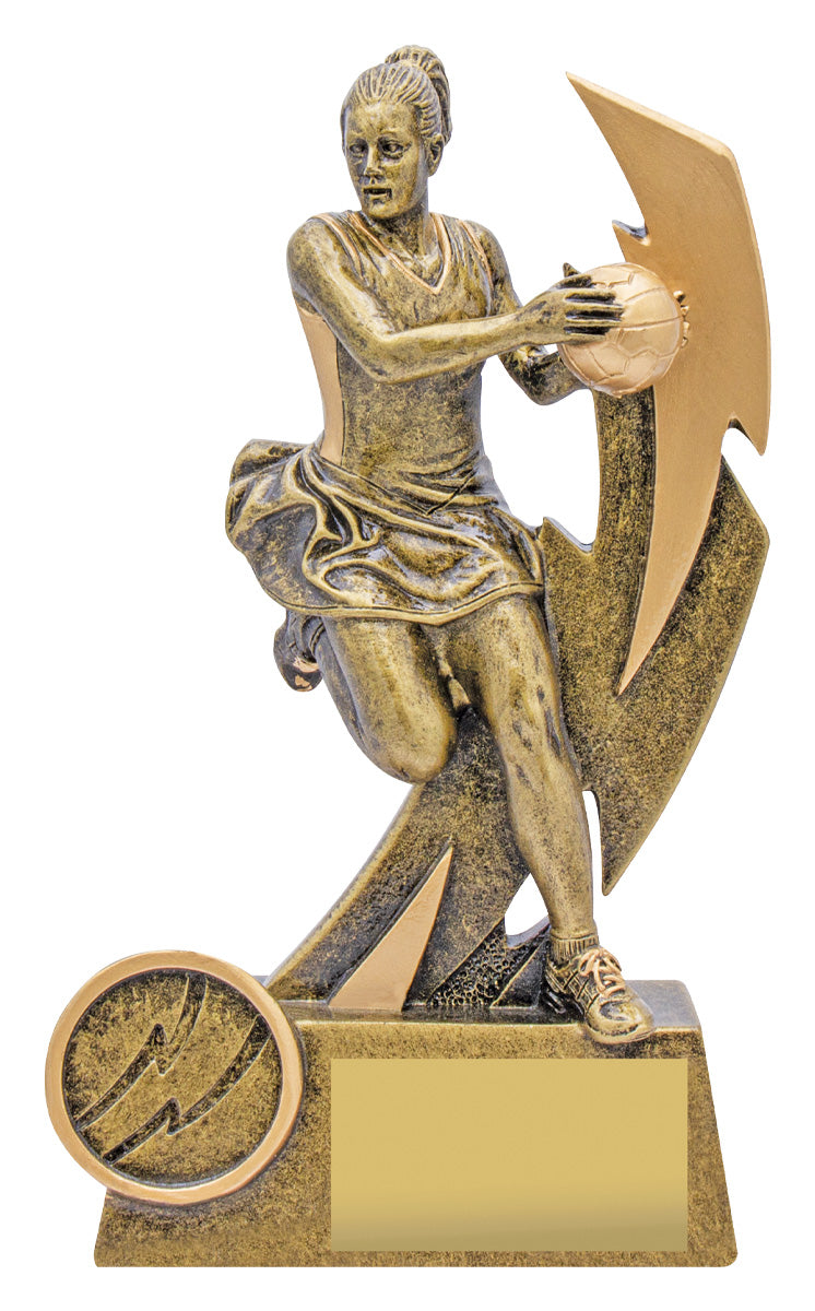 Netball Shazam Trophy Series showcases the netball player with excellent detail and is completed in classic trophy gold colours. With 5 sizes, series of netball trophies perfect for your club or team award presentation. Ideal for your best player awards.